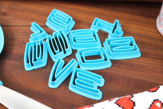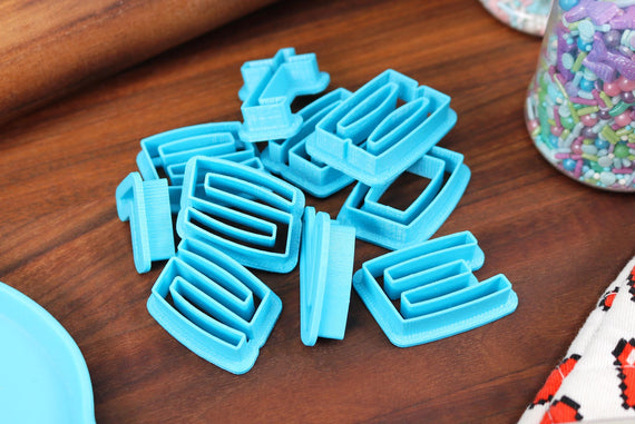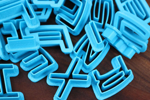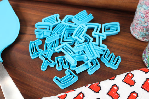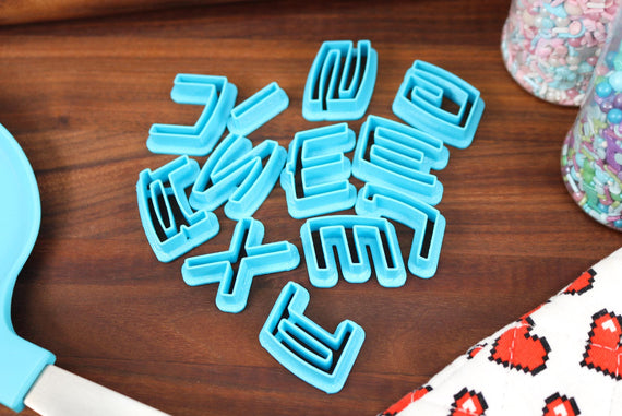 These fonts will be produced mirrored, so that when cutting the cookies normally, the letters will be the right way around. This set photographed was made special to show off the font in a readable way.