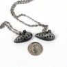 Each of our charm necklaces is hand crafted with quality and care as our main priority. They start out as hand sculpted models that are then molded and cast with a special crystal resin and metal powder mix. This cast is then cleaned and aged using a method that brings out the design out to a shiny finish and leaves the piece with an antiqued feel. Each one is cleaned and secured to hypoallergenic stainless steel necklace using super strong adhesive, leaving the finish piece lightweight and durable!