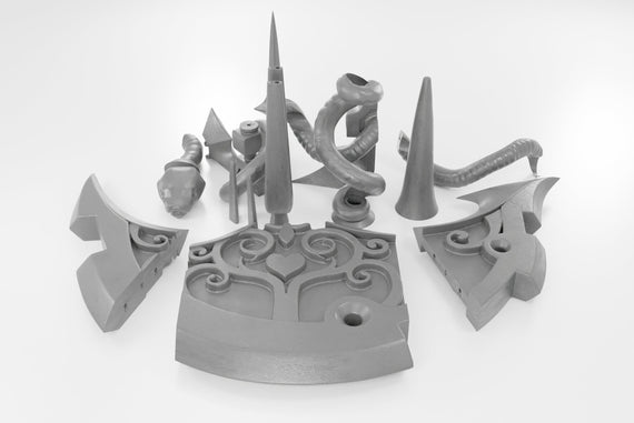Please be aware the assembled prop pictures shown involved some finishing and support removal. Color of plastic will vary based on availability.