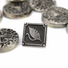 Each of our collectible pins is hand crafted with quality and care as our main priority. They start out as hand sculpted models that are then molded and cast with a special crystal resin and metal powder mix. This cast is then cleaned and aged using a method that brings out the design out to a shiny finish and leaves the piece with an antiqued feel. Each one is cleaned and secured to hypoallergenic pin using super strong adhesive, leaving the finish piece lightweight and durable!