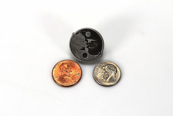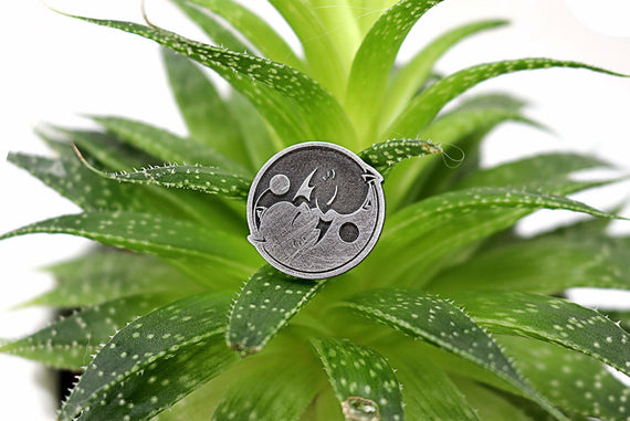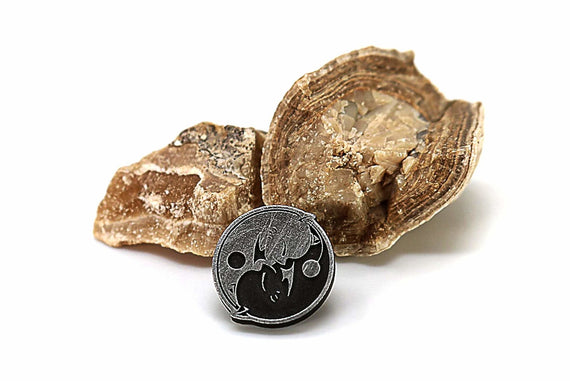 Each of our collectible pins is hand crafted with quality and care as our main priority. They start out as hand sculpted models that are then molded and cast with a special crystal resin and metal powder mix. This cast is then cleaned and aged using a method that brings out the design out to a shiny finish and leaves the piece with an antiqued feel. Each one is cleaned and secured to hypoallergenic pin using super strong adhesive, leaving the finish piece lightweight and durable!