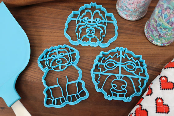 Goldendoodle Dog Cookie Cutters - Detailed Goldendoodle, Goggles Goldendoodle, Goldendoodle Face, Doodle Outline, Goldendoodle Sitting