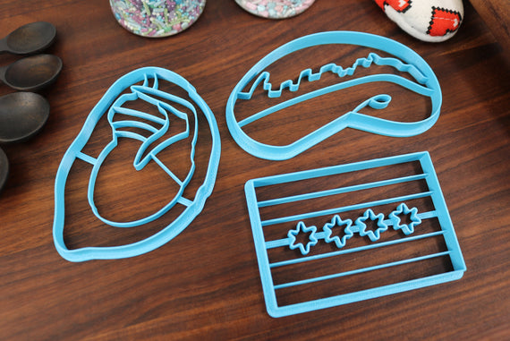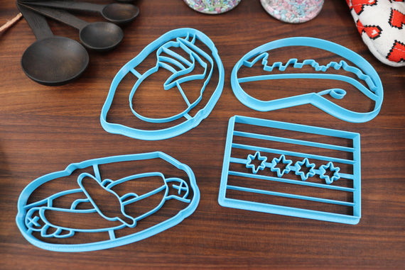 Illinois Cookie Cutters - Chicago Flag, Hot Dog, Cloud Gate, Illinois State Outline, Tully Monster Fossil