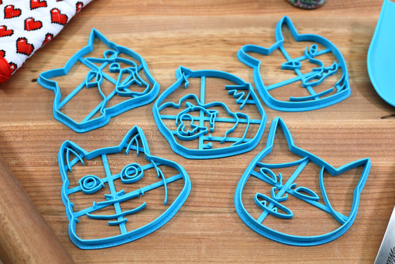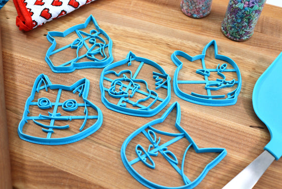 Meme Animal Cookie Cutters - Meme Cat Face, Meme Dog Face, Staring Cat