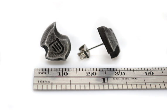 Each of our earrings is hand crafted with quality and care as our main priority. They start out as hand sculpted models that are then molded and cast with a special crystal resin and metal powder mix. This cast is then cleaned and aged using a method that brings out the design out to a shiny finish and leaves the piece with an antiqued feel. Each one is cleaned and secured to hypoallergenic stainless steel studs using super strong adhesive, leaving the finish piece lightweight and durable!
