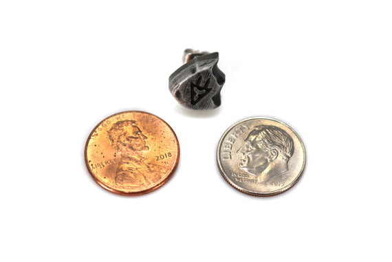 Each of our earrings is hand crafted with quality and care as our main priority. They start out as hand sculpted models that are then molded and cast with a special crystal resin and metal powder mix. This cast is then cleaned and aged using a method that brings out the design out to a shiny finish and leaves the piece with an antiqued feel. Each one is cleaned and secured to hypoallergenic stainless steel studs using super strong adhesive, leaving the finish piece lightweight and durable!