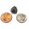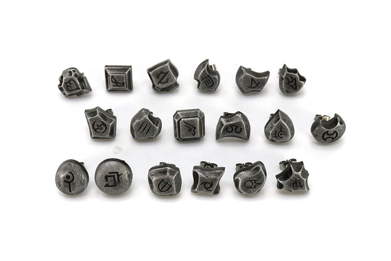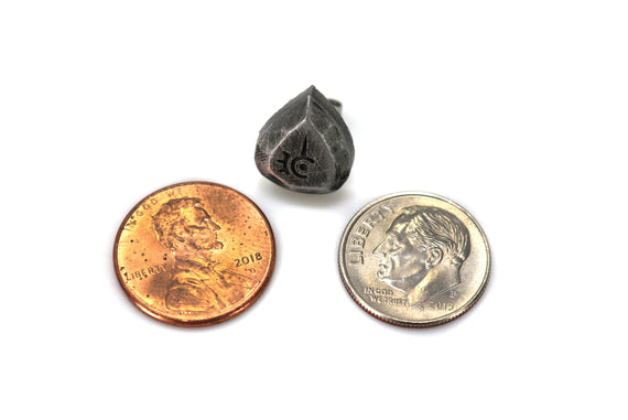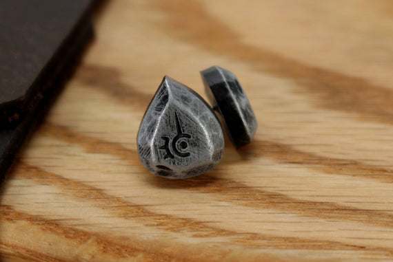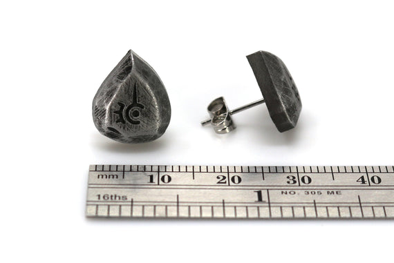 Each of our earrings is hand crafted with quality and care as our main priority. They start out as hand sculpted models that are then molded and cast with a special crystal resin and metal powder mix. This cast is then cleaned and aged using a method that brings out the design out to a shiny finish and leaves the piece with an antiqued feel. Each one is cleaned and secured to hypoallergenic stainless steel studs using super strong adhesive, leaving the finish piece lightweight and durable!
