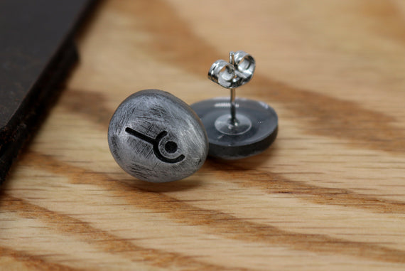 Each of our earrings is hand crafted with quality and care as our main priority. They start out as hand sculpted models that are then molded and cast with a special crystal resin and metal powder mix. This cast is then cleaned and aged using a method that brings out the design out to a shiny finish and leaves the piece with an antiqued feel. Each one is cleaned and secured to hypoallergenic stainless steel studs using super strong adhesive, leaving the finish piece lightweight and durable!