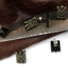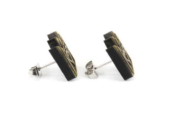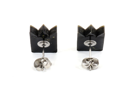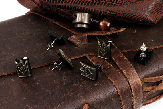Each of our pieces is hand crafted with quality and care as our main priority. They start out as hand sculpted models that are then molded and cast with a special crystal resin and metal powder mix. This cast is then cleaned and aged using a method that brings out the design out to a shiny finish and leaves the piece with an antiqued feel. Each one is cleaned and secured to a hypoallergenic stainless steel earring post using super strong adhesive, leaving the finish piece lightweight and durable!