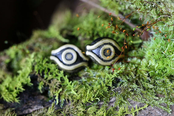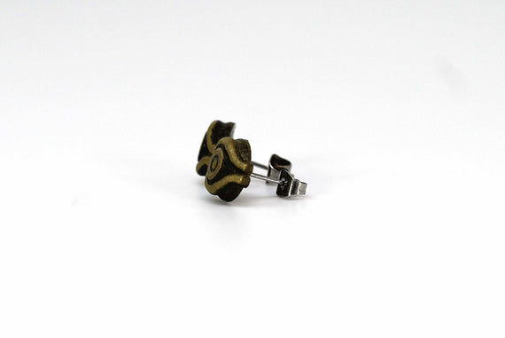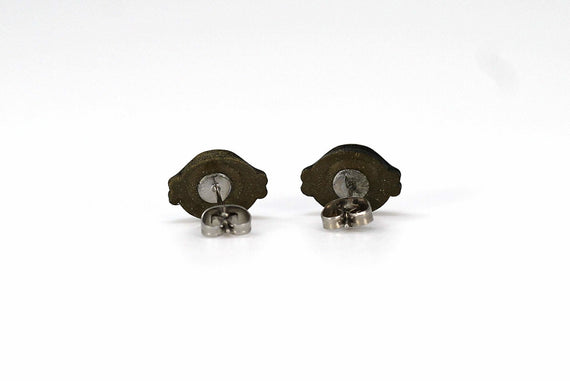 Each of our earrings are hand crafted with quality and care as our main priority. They start out as hand sculpted models that are then molded and cast with a special crystal resin and metal powder mix. This cast is then cleaned and aged using a method that brings out the design out to a shiny finish and leaves the piece with an antiqued feel. Each one is cleaned and secured to hypoallergenic studs using super strong adhesive, leaving the finish piece lightweight and durable!