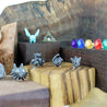 Each of our earrings is hand crafted with quality and care as our main priority. They start out as hand sculpted models that are then molded and cast with a special crystal. Each one is cleaned and secured to hypoallergenic stainless steel studs using super strong adhesive, leaving the finish piece lightweight and durable!