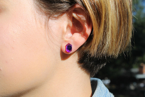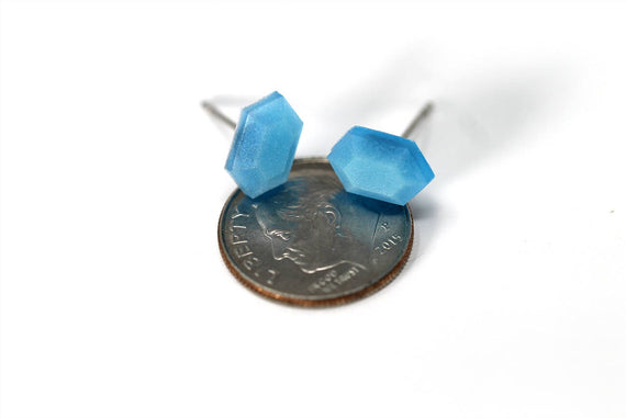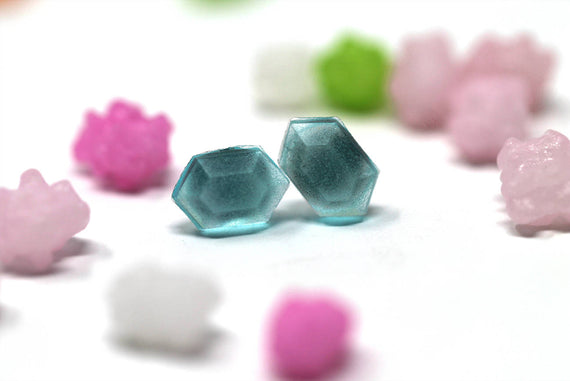Each of our earrings is hand crafted with quality and care as our main priority. They start out as hand sculpted models that are then molded and cast with a special crystal resin. Each one is cleaned and secured to hypoallergenic stainless steel studs using super strong adhesive, leaving the finish piece lightweight and durable!
