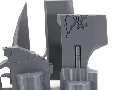 Please be aware the assembled prop pictures shown involved some finishing and support removal. Color of plastic will vary based on availability.