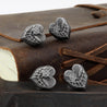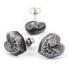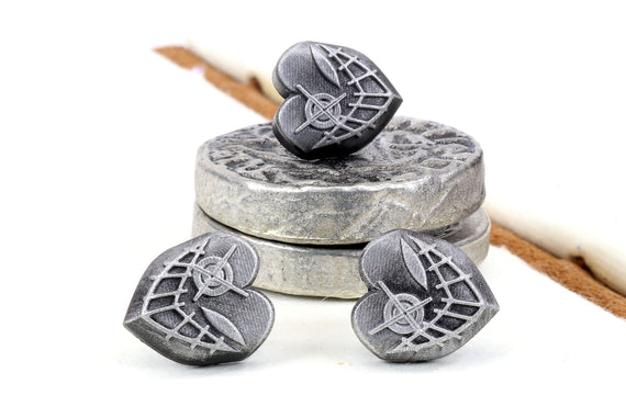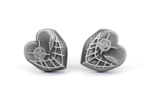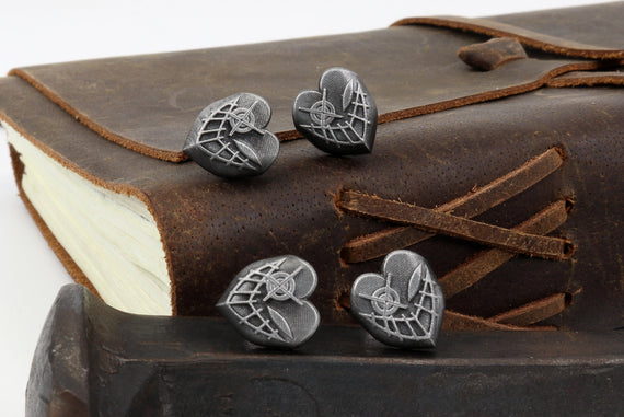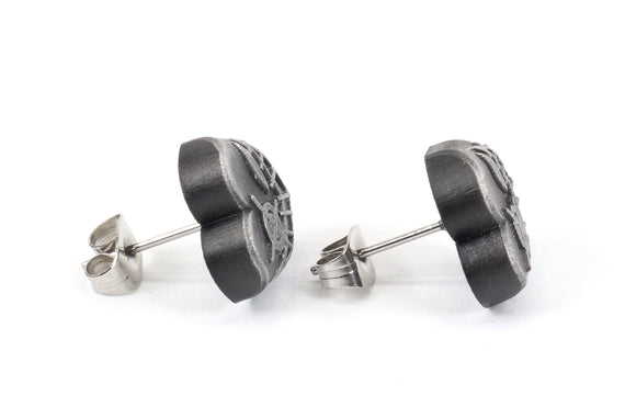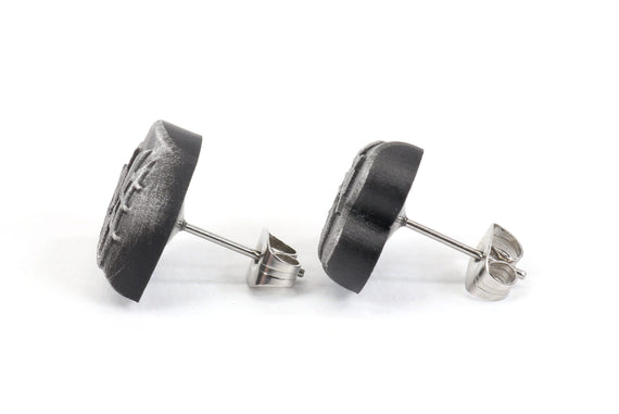 Each of our earrings is hand crafted with quality and care as our main priority. They start out as hand sculpted models that are then molded and cast with a special crystal resin and metal powder mix. This cast is then cleaned and aged using a method that brings out the design out to a shiny finish and leaves the piece with an antiqued feel. Each one is cleaned and secured to hypoallergenic stainless steel studs using super strong adhesive, leaving the finish piece lightweight and durable!