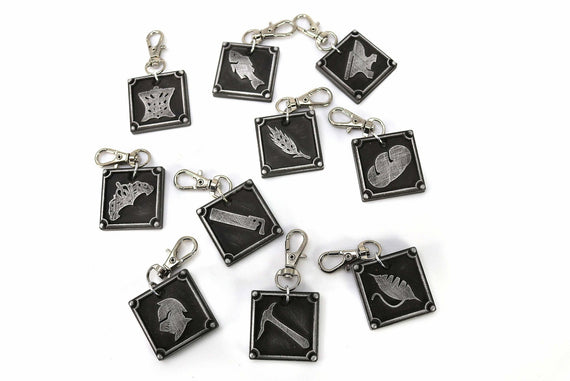 Each of our keychains are hand crafted with quality and care as our main priority. They start out as hand sculpted models that are then molded and cast with a special crystal resin and metal powder mix. This cast is then cleaned and aged using a method that brings out the design out to a shiny finish and leaves the piece with an antiqued feel. Each one is cleaned and secured to a hypoallergenic necklace or key chain using super strong adhesive, leaving the finish piece lightweight and durable!