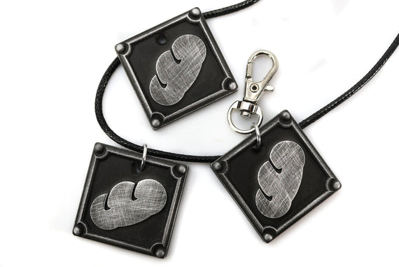 Each of our keychains are hand crafted with quality and care as our main priority. They start out as hand sculpted models that are then molded and cast with a special crystal resin and metal powder mix. This cast is then cleaned and aged using a method that brings out the design out to a shiny finish and leaves the piece with an antiqued feel. Each one is cleaned and secured to a hypoallergenic necklace or key chain using super strong adhesive, leaving the finish piece lightweight and durable!