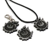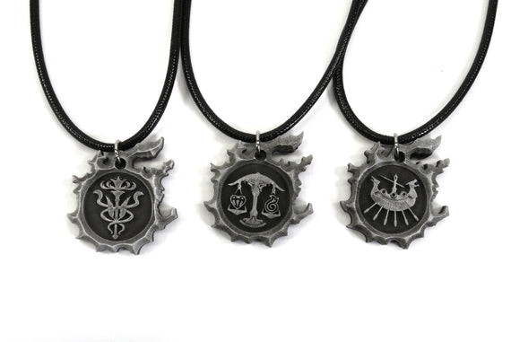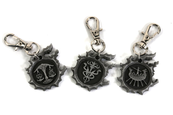 Each of our keychains and necklaces are hand crafted with quality and care as our main priority. They start out as hand sculpted models that are then molded and cast with a special crystal resin and metal powder mix. This cast is then cleaned and aged using a method that brings out the design out to a shiny finish and leaves the piece with an antiqued feel. Each one is cleaned and secured to a hypoallergenic necklace or key chain using super strong adhesive, leaving the finish piece lightweight and durable!