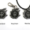 Each of our keychains and necklaces are hand crafted with quality and care as our main priority. They start out as hand sculpted models that are then molded and cast with a special crystal resin and metal powder mix. This cast is then cleaned and aged using a method that brings out the design out to a shiny finish and leaves the piece with an antiqued feel. Each one is cleaned and secured to a hypoallergenic necklace or key chain using super strong adhesive, leaving the finish piece lightweight and durable!