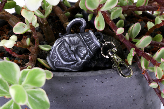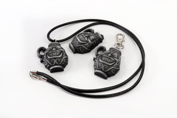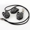 ach of our keychains and necklaces are hand crafted with quality and care as our main priority. They start out as hand sculpted models that are then molded and cast with a special crystal resin and metal powder mix. This cast is then cleaned and aged using a method that brings out the design out to a shiny finish and leaves the piece with an antiqued feel. Each one is cleaned and secured to a hypoallergenic necklace or key chain using super strong adhesive, leaving the finish piece lightweight and durable!