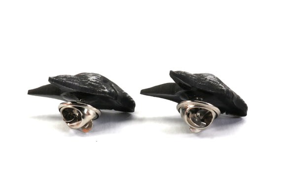 Each of our collectible pins is hand crafted with quality and care as our main priority. They start out as hand sculpted models that are then molded and cast with a special crystal resin and metal powder mix. This cast is then cleaned and aged using a method that brings out the design out to a shiny finish and leaves the piece with an antiqued feel. Each one is cleaned and secured to hypoallergenic pin using super strong adhesive, leaving the finish piece lightweight and durable!
