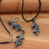 Each of our pieces is hand crafted with quality and care as our main priority. They start out as hand sculpted models that are then molded and cast with a special crystal resin and metal powder mix. This cast is then cleaned and aged using a method that brings out the design out to a shiny finish and leaves the piece with an antiqued feel. Each one is cleaned and secured to a hypoallergenic necklace or key chain using super strong adhesive, leaving the finish piece lightweight and durable!