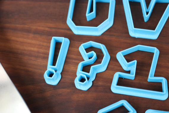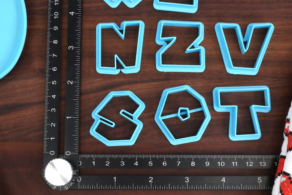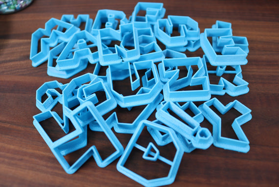 These fonts will be produced mirrored, so that when cutting the cookies normally, the letters will be the right way around. This set photographed was made special to show off the font in a readable way.
