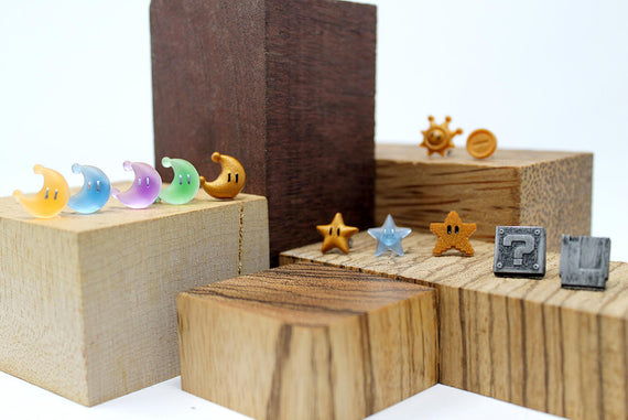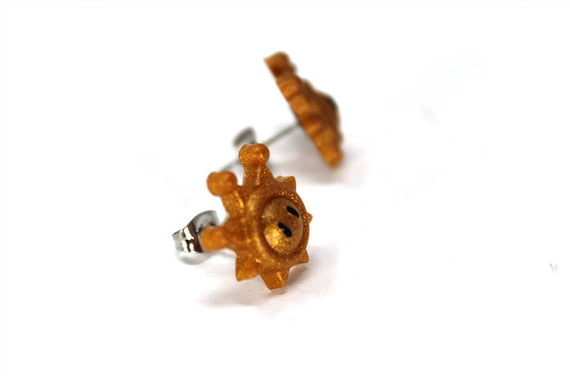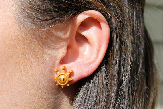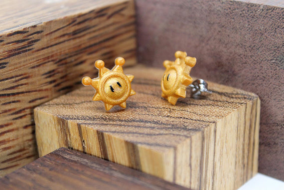 The Shine Sprite, a symbol of gorgeous sunshine and fun from the Delfino Isles. After wreaking havoc across the beautiful beaches and kidnapping princess peach, Bowsers son steals all of these little Shiny Sprites!! Its up to Mario to save the day and collect them all, and now you can help him by sporting these beautiful earrings!