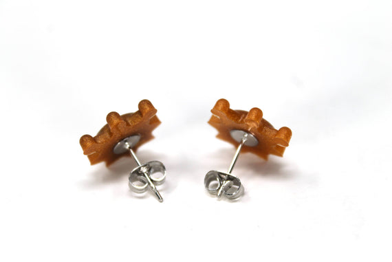 Each of our earrings is hand crafted with quality and care as our main priority. They start out as hand sculpted models that are then molded and cast with a special crystal resin. Each one is cleaned and secured to hypoallergenic stainless steel studs using super strong adhesive, leaving the finish piece lightweight and durable!