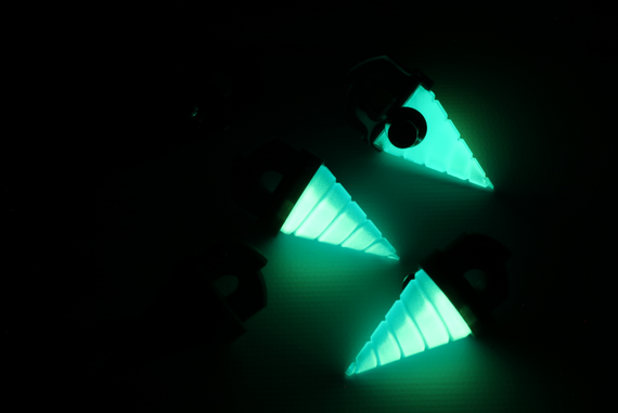 - Made of super durable crystal resin infused with brass, aluminum, or special glow pigments