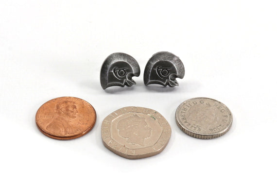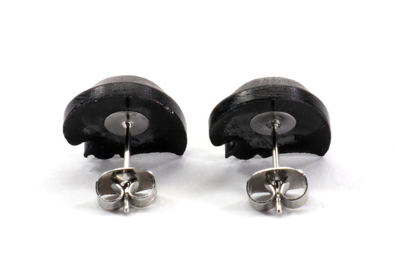 Each of our earrings is hand crafted with quality and care as our main priority. They start out as hand sculpted models that are then molded and cast with a special crystal resin and metal powder mix. This cast is then cleaned and aged using a method that brings out the design out to a shiny finish and leaves the piece with an antiqued feel. Each one is cleaned and secured to hypoallergenic stainless steel studs using super strong adhesive, leaving the finish piece lightweight and durable!