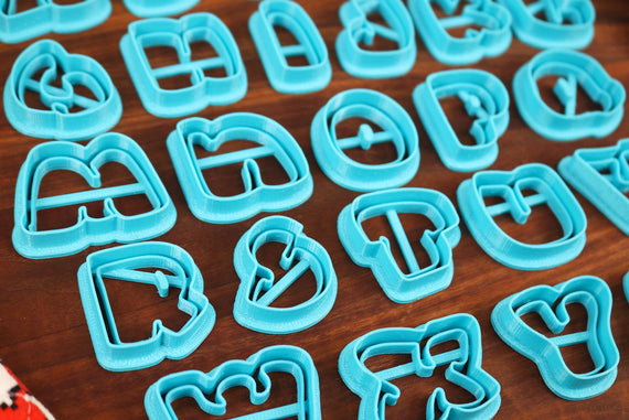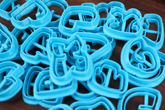 These fonts will be produced mirrored, so that when cutting the cookies normally, the letters will be the right way around. This set photographed was made special to show off the font in a readable way.