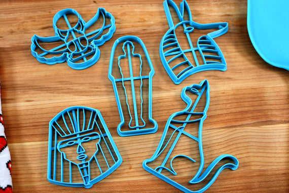 Egyptian Cookie Cutters - Mummy, Pharaoh, Sphinx Cat, Sun Scarab, Anubis