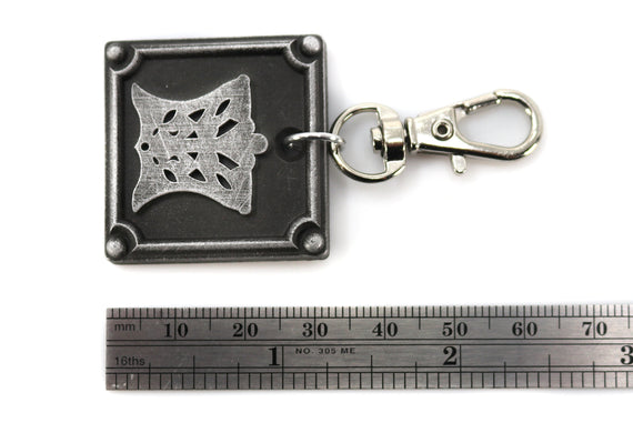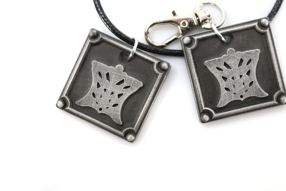 Each of our keychains are hand crafted with quality and care as our main priority. They start out as hand sculpted models that are then molded and cast with a special crystal resin and metal powder mix. This cast is then cleaned and aged using a method that brings out the design out to a shiny finish and leaves the piece with an antiqued feel. Each one is cleaned and secured to a hypoallergenic necklace or key chain using super strong adhesive, leaving the finish piece lightweight and durable!