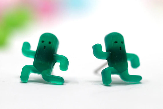 Stainless Steel Studded Cactuar Earrings Pair - FFXV