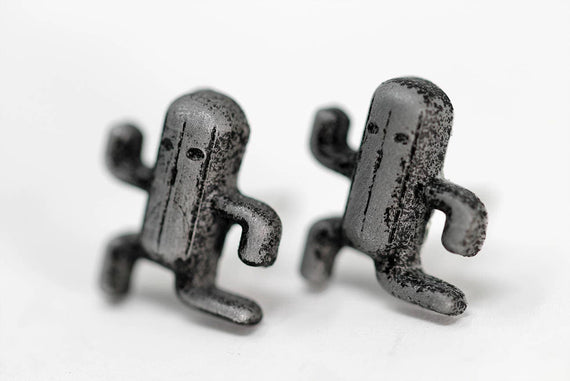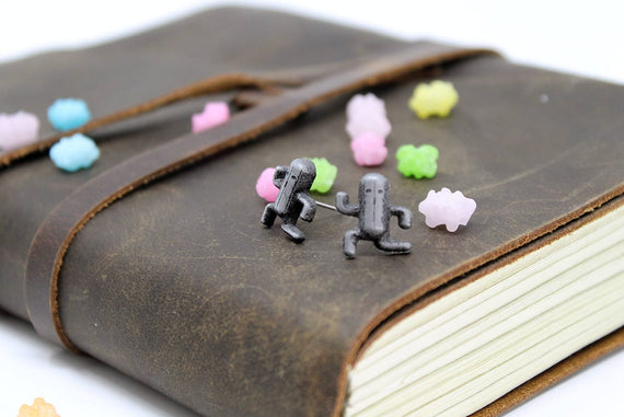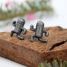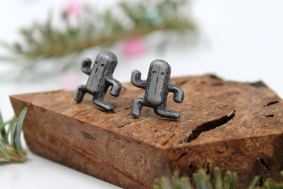 Each of our earrings is hand crafted with quality and care as our main priority. They start out as hand sculpted models that are then molded and cast with a special crystal resin and metal powder mix. This cast is then cleaned and aged using a method that brings out the design out to a shiny finish and leaves the piece with an antiqued feel. Each one is cleaned and secured to hypoallergenic stainless steel studs using super strong adhesive, leaving the finish piece lightweight and durable!