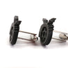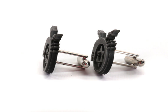 Each of our pieces is hand crafted with quality and care as our main priority. They start out as hand sculpted models that are then molded and cast with a special crystal resin and metal powder mix. This cast is then cleaned and aged using a method that brings out the design out to a shiny finish and leaves the piece with an antiqued feel. Each one is cleaned and secured to a hypoallergenic Cufflink using super strong adhesive, leaving the finish piece lightweight and durable!