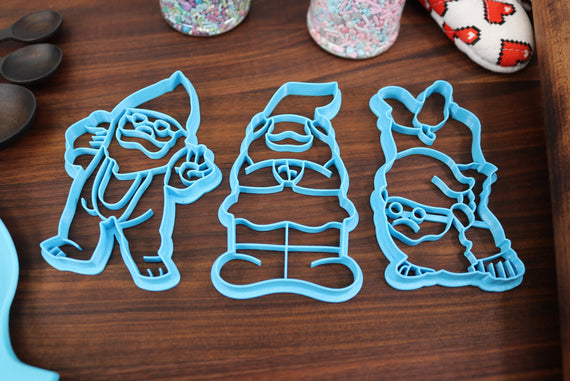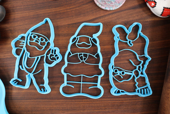 Gnarly Gnomes Cookie Cutters, Set 1 - Beach Gnome, Gnome Face, Handstand Gnome, Short Gnome, Standing Gnome
