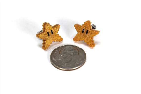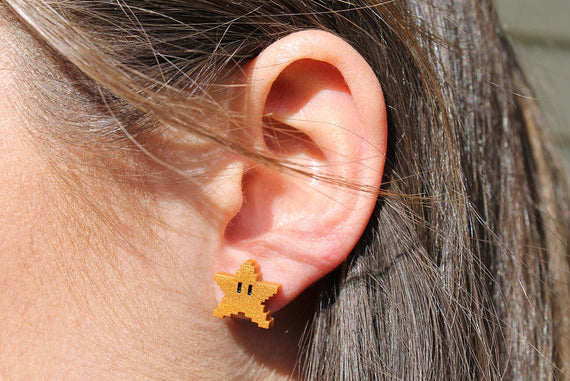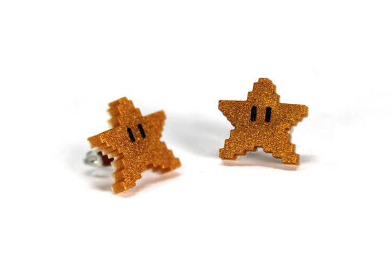 8-Bit Power Star Earrings Pair - Super Mario Sunshine