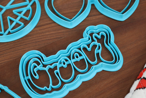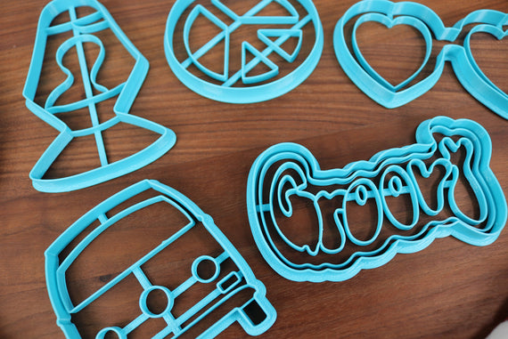 Sensational 60's Cookie Cutters - Groovy Word, Heart Sunglasses, Hippie Van, Lava Lamp, Peace Symbol