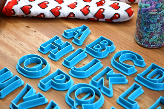 These fonts will be produced mirrored, so that when cutting the cookies normally, the letters will be the right way around. This set photographed was made special to show off the font in a readable way.