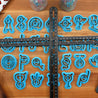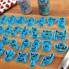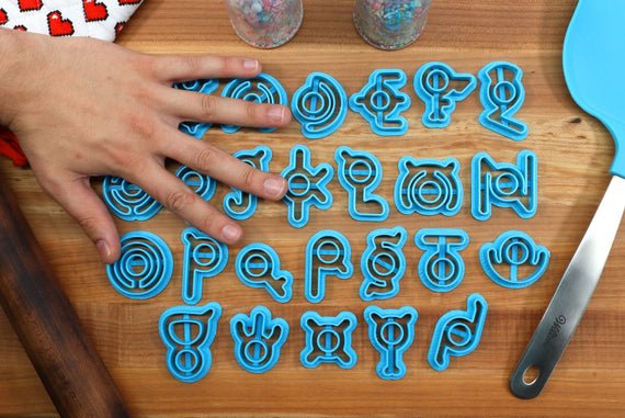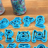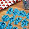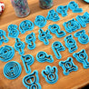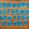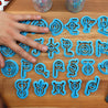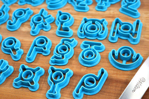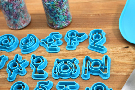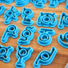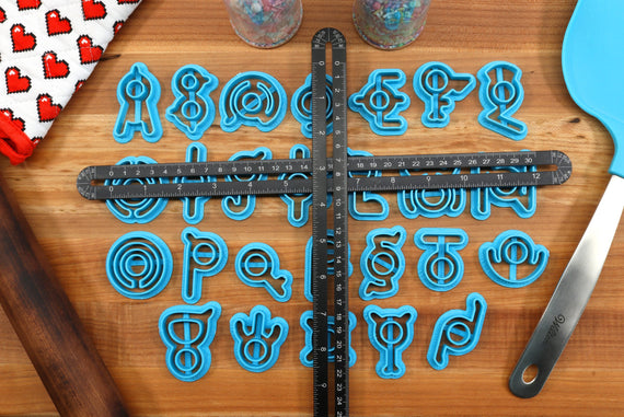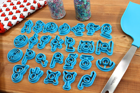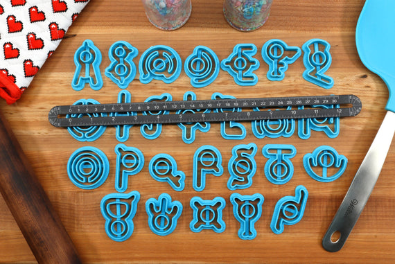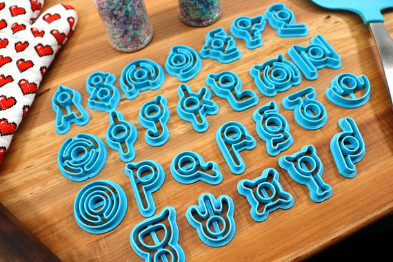 These fonts will be produced mirrored, so that when cutting the cookies normally, the letters will be the right way around. This set photographed was made special to show off the font in a readable way.