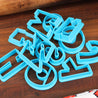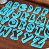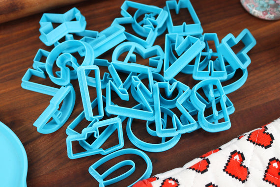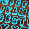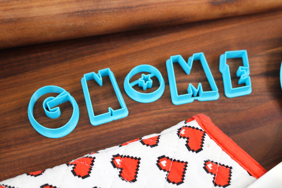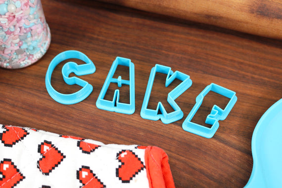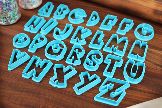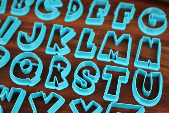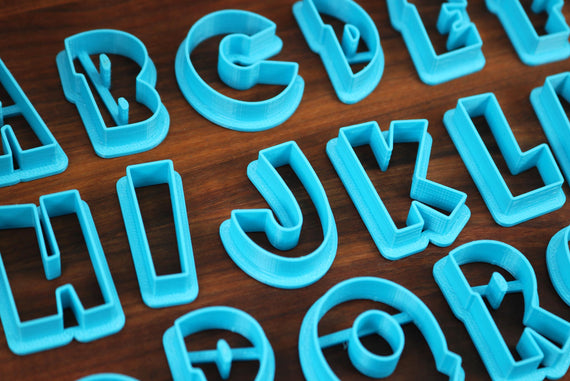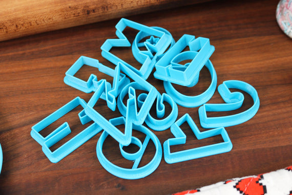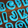 These fonts will be produced mirrored, so that when cutting the cookies normally, the letters will be the right way around. This set photographed was made special to show off the font in a readable way.