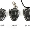 Each of our keychains are hand crafted with quality and care as our main priority. They start out as hand sculpted models that are then molded and cast with a special crystal resin and metal powder mix. This cast is then cleaned and aged using a method that brings out the design out to a shiny finish and leaves the piece with an antiqued feel. Each one is cleaned and secured to a hypoallergenic necklace or key chain using super strong adhesive, leaving the finish piece lightweight and durable!