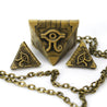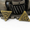 Each of our pieces of loot are hand crafted with quality and care as our main priority. They start out as hand sculpted models that are then molded and cast with a special crystal resin and metal powder mix. This cast is then cleaned and aged using a method that brings out the design out to a shiny finish and leaves the piece with an antiqued feel. Each one is cleaned and secured to a hypoallergenic necklace or key chain using super strong adhesive, leaving the finish piece lightweight and durable!