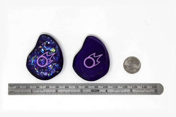 Each soul stone is handmade with high quality crystal resin and hand polished for a nice shine. When fully charged, each soul stone emits a beautiful and bright Aetherial glow from its center emblem, making it uniquely stunning.