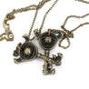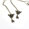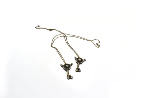 Each of our pieces is hand crafted with quality and care as our main priority. They start out as hand sculpted models that are then molded and cast with a special crystal resin and metal powder mix. This cast is then cleaned and aged using a method that brings out the design out to a shiny finish and leaves the piece with an antiqued feel. Each one is cleaned and secured to a hypoallergenic necklace or key chain using super strong adhesive, leaving the finish piece lightweight and durable!