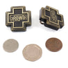 Each of our pins and pinbacks are hand crafted with quality and care as our main priority. They start out as hand sculpted models that are then molded and cast with a special crystal resin and metal powder mix. This cast is then cleaned and aged using a method that brings out the design out to a shiny finish and leaves the piece with an antiqued feel. Each one is cleaned and secured to a hypoallergenic pin back using super strong adhesive, leaving the finish piece lightweight and durable!