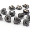 Each of our charms is hand crafted with quality and care as our main priority. They start out as hand sculpted models then molded and cast with a special crystal resin and metal powder mix. This cast is then cleaned and aged using a method that brings out the design out to a shiny finish and leaves the piece with an antiqued feel. Each one is cleaned and secured to a hypoallergenic stainless steel pin using super strong adhesive, leaving the finished piece lightweight and durable!