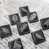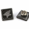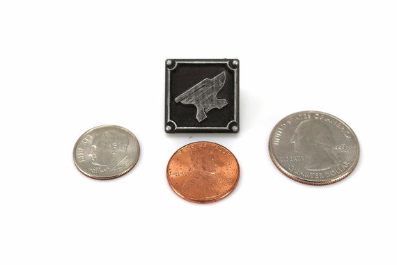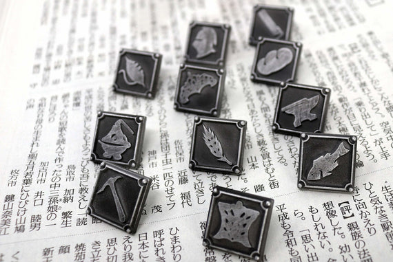 Each of our collectible pins is hand crafted with quality and care as our main priority. They start out as hand sculpted models that are then molded and cast with a special crystal resin and metal powder mix. This cast is then cleaned and aged using a method that brings out the design out to a shiny finish and leaves the piece with an antiqued feel. Each one is cleaned and secured to hypoallergenic pin using super strong adhesive, leaving the finish piece lightweight and durable!