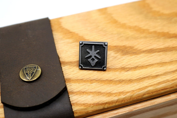Each of our collectible pins is hand crafted with quality and care as our main priority. They start out as hand sculpted models that are then molded and cast with a special crystal resin and metal powder mix. This cast is then cleaned and aged using a method that brings out the design out to a shiny finish and leaves the piece with an antiqued feel. Each one is cleaned and secured to hypoallergenic pin using super strong adhesive, leaving the finish piece lightweight and durable!
